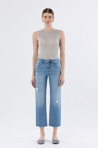 Rose Raw Hem Crop Straight